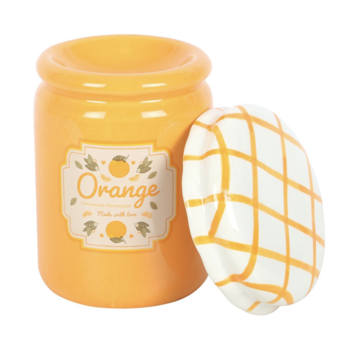 Brûleur Orange en céramique, en forme de pot de confiture traditionnel, arbore une finition brillante et un couvercle à carreaux orange et blancs. Ce ravissant brûleur se transforme en un objet de décoration original lorsqu’il n’est pas utilisé. Pensez à toujours retirer le couvercle avant utilisation.
